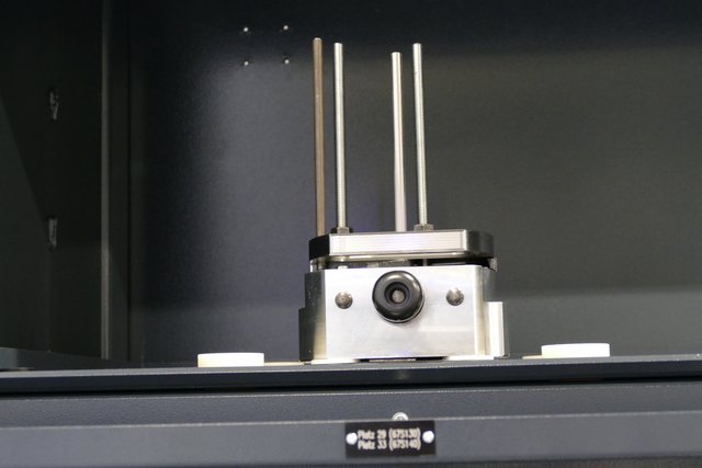 Der Maschinentisch der VC1150 ist mit einem Nullpunktspannsystem für Paletten 400x400mm auf dem Tisch versehen. Daneben befindet sich eine 4. Achse mit Reitstock, wobei die 4. Achse ebenfalls mit einem Nullpunktspannsystem versehen ist. Die Position des Reitstocks wurde mit einer externen Überwachung abgefragt, um im Automationsbetrieb hier keine Unbekannte zu haben. Die Maschine verfügt daneben über eine Werkzeugüberwachung per Laser sowie einen Messtaster. So kann nach dem Bestücke der Palette der Nullpunkt bei Bedarf ermittelt werden, Maße nach Fertigstellung kontrolliert werden und über den Laser die Werkzeuge überwacht und bei Bedarf nachgestellt werden. Themen wir Werkzeugbrucherkennung erfolgen darüber ebenfalls automatisch, um damit den Prozess im mannlosen Betrieb abzusichern.