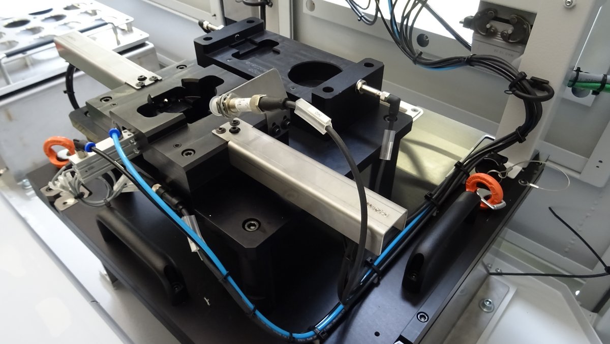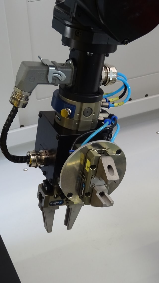 - Schnellwechselschnittstelle für den Robotergreifer zum Wechseln zwischen kubischen und runden Teilen