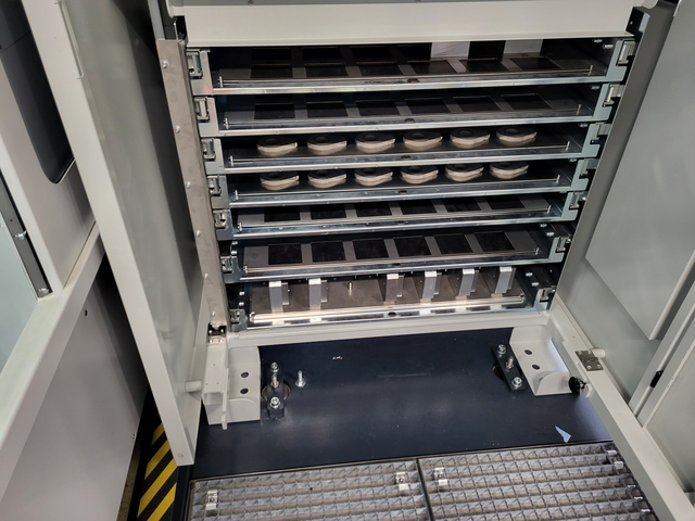 Der nächste Schritt im Wachstum des Unternehmens war die Integration einer SPINNER U5 630 - einer 5-Achs-Fräsmaschine mit 122 Werkzeugplätzen und KSS-Temperierung - in Kombination mit einer vollautomatischen ROBOBOXtreme. Die Automationszelle ermöglicht unbemannte Fertigung von Einzelteilen und Kleinserien rund um die Uhr – bisher musste dafür Herr Salwasser nachts wie am Wochenende in die Fertigung, um Material nachzulegen und zu wechseln.